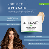 Aestelance Hair Repair Mask is an intensive protein treatment designed to revive and strengthen damaged hair. Infused with hydrolyzed silk, this powerful mask strengthens and smooths each strand, enhancing elasticity and reducing breakage. Soy proteins provide deep nourishment, repairing and fortifying your hair from within. Copper peptides promote healthy hair growth and revitalize the scalp.